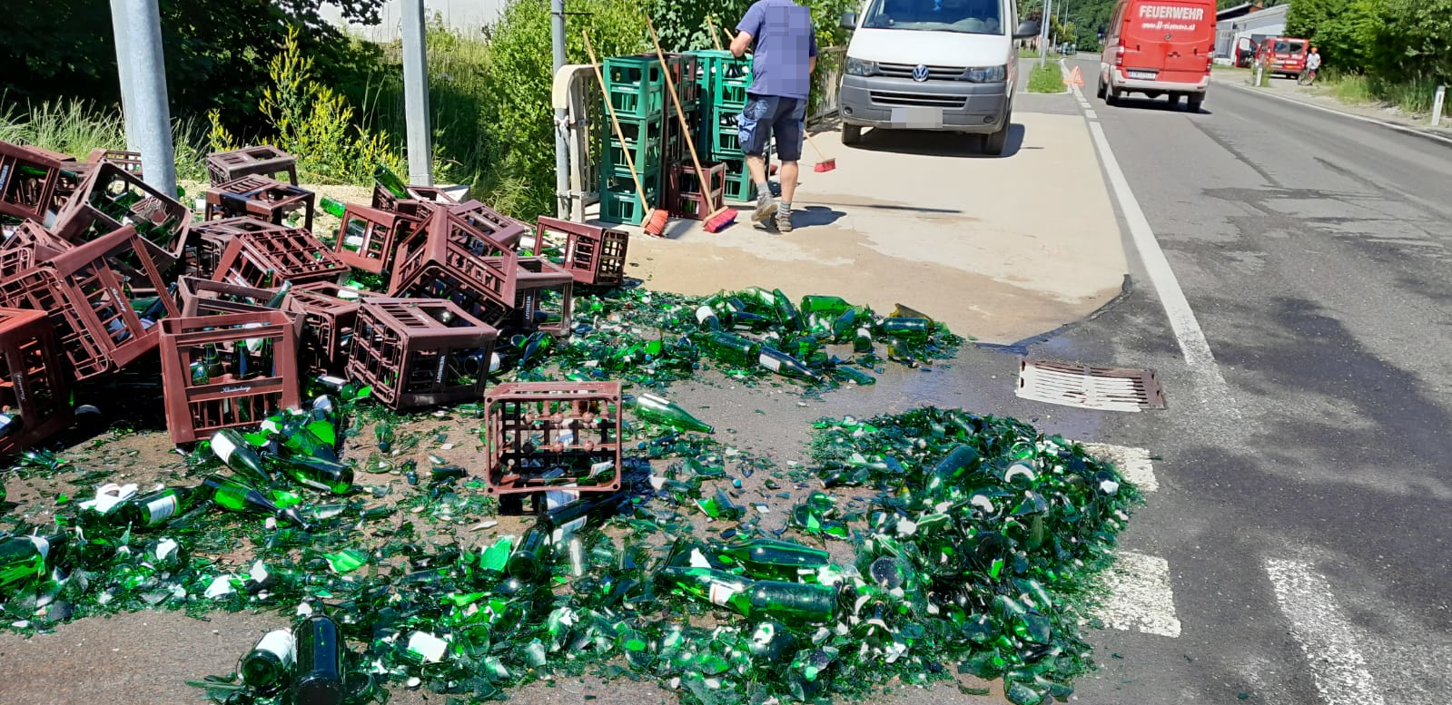 Der gestrige Dienstag war ein schwarzer Tag für unsere Weinliebhaber. Ein Transporter verlor in unmittelbarer Nähe zur B115 einen Teil seiner Ladung. Nach dem Freimachen der Straße konnten wir nach rund eineinhalb Stunden wieder ins Rüsthaus einrücken.