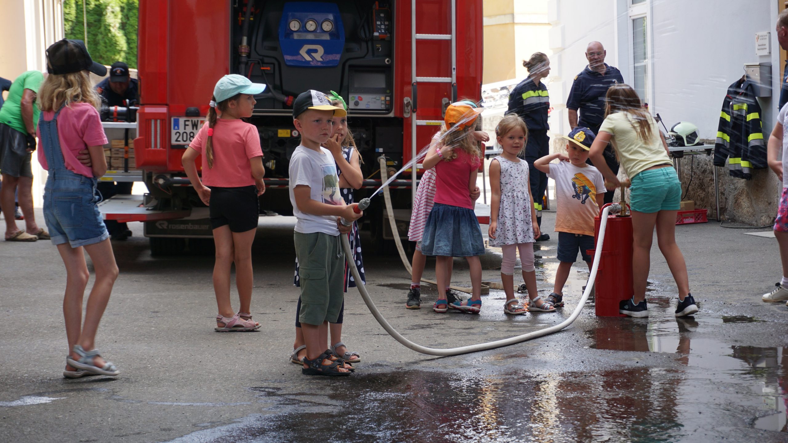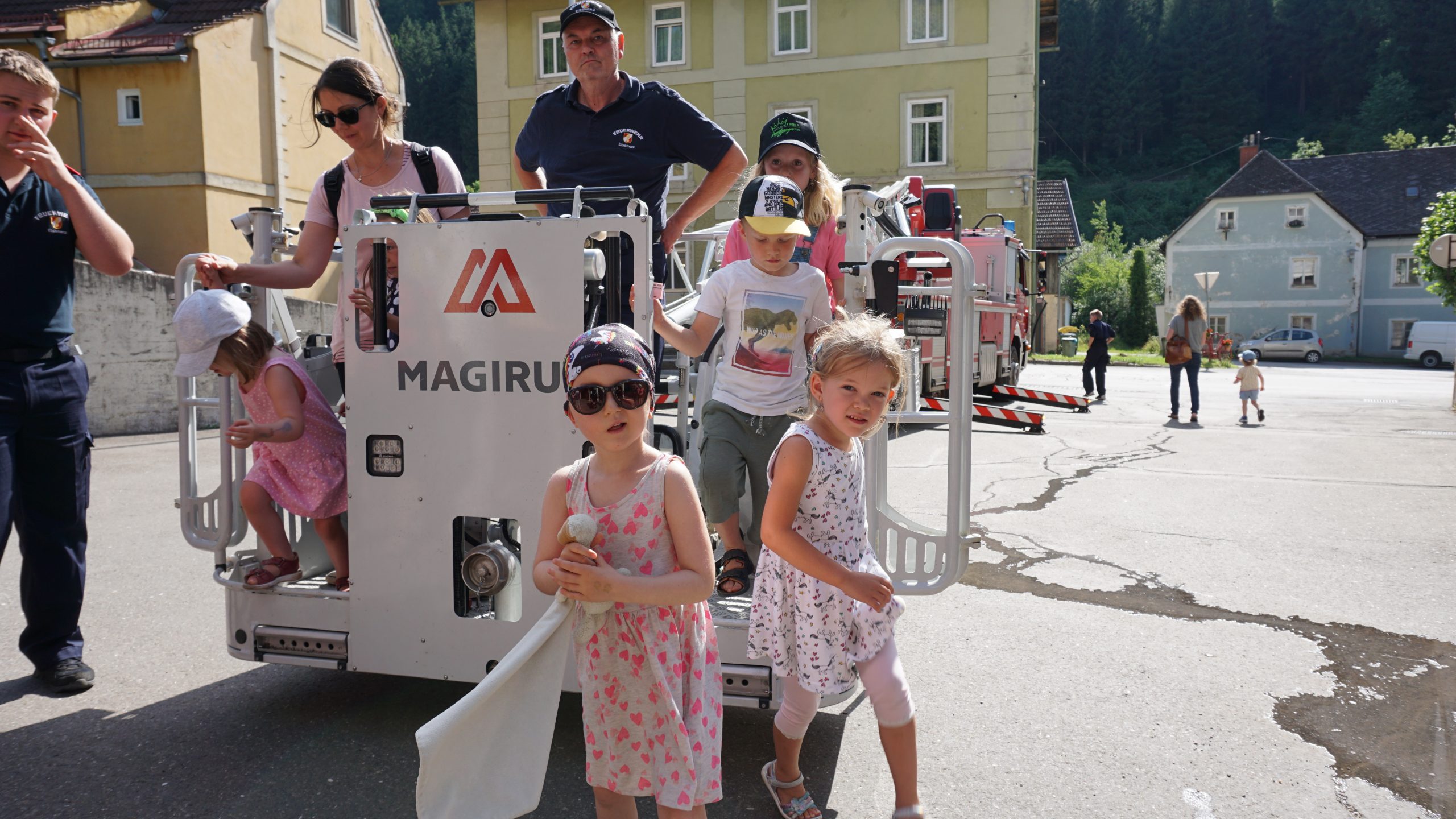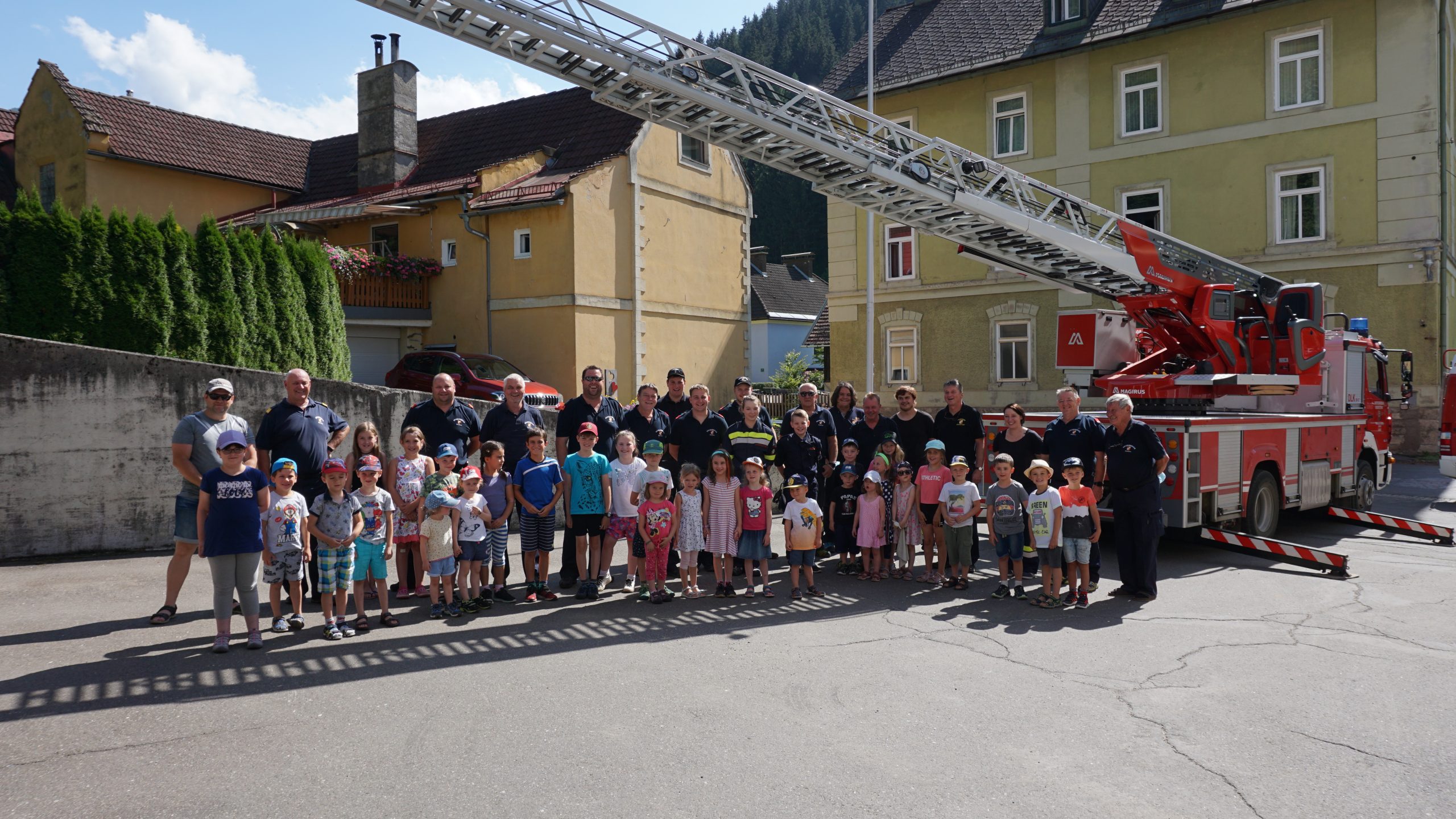 Mit der Drehleiter luftige Höhen erkunden, im Feuerwehrauto ausrücken, Rohrführer an der Kübelspritze sein. Dies alles machten wir heute für unsere Kleinsten wieder möglich. Im Rahmen des Ferienpass Eisenerz durfte Kommandant HBI Neumann 36 interessierte Kinder begrüßen und ihnen zusammen mit seinen Kameraden das Feuerwehrwesen etwas näher bringen. „Ohne Mampf kein Kampf“ – für Speis und Trank wurde natürlich gesorgt und so durften wir einige interessante Stunden miteinander verbringen.